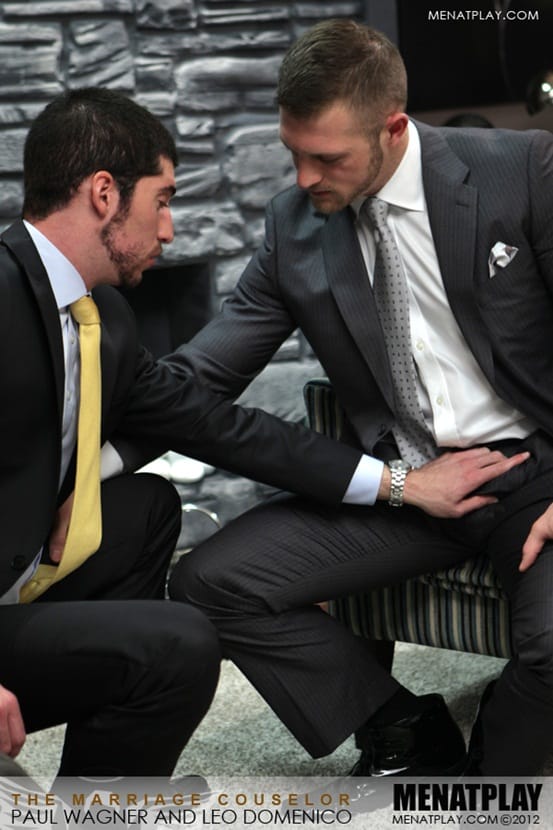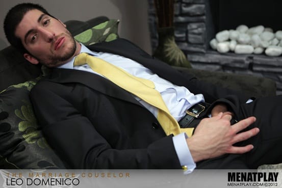 Men at Play says: When Leo Domenico and Emma realize they have issues with their marriage, they take a visit to a Marriage Counselor to get to the bottom of the problem. Their counselor, suave suited Paul Wagner, gets Leo’s juices pumping and the bulge in his crotch and uncontrollable stares at Mr.Wagner make it obvious what the issue is with Leo’s marriage.